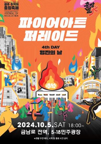 충장 파이어아트 퍼레이드는 5일 오후 6시부터 8시 30분까지 금남로 일대에서 3부로 나뉘어 열린다.
