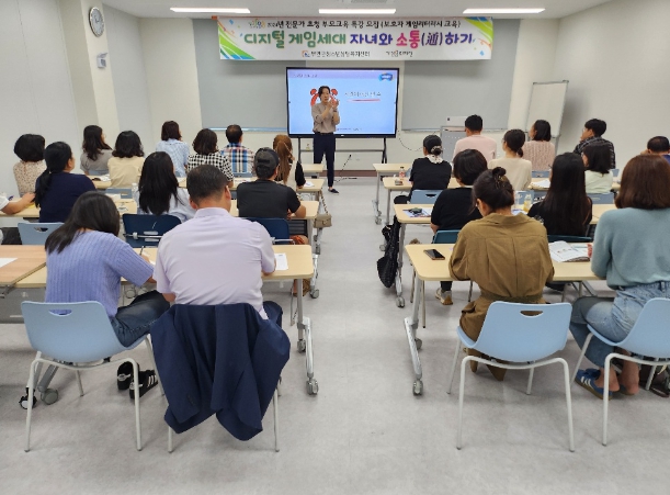 이번 교육은 게임문화재단의 강사가 교육을 진행하며 자녀의 게임문화 이해, 게임 과몰입의 개념 및 원인 이해, 올바른 게임 이용 지도, 긍정적인 소통 방식에 대한 정보를 제공했다.