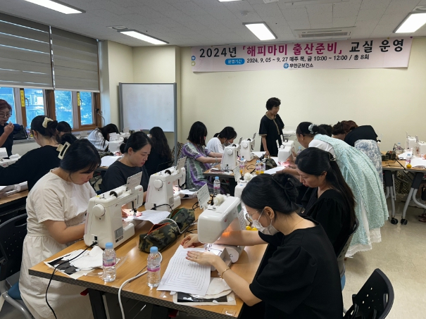 출산 준비 교실은 각 분야의 전문 강사들로 구성된 수업을 진행했고 ▲신생아 돌보기 ▲영양교실 ▲아기용품 만들기 ▲임신부 감정 상담 ▲젖몸살 예방을 위한 셀프 마사지 배우기 등 필수적인 내용을 교육하여 호응을 얻었다.