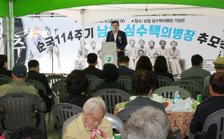 이상익 군수는 추모사를 통해 “일제의 총칼에 맞서 열렬히 투쟁했던 남일 선생은 고난과 시련의 역사를 영광과 승리의 역사로 바꾸어 놓은 영웅”이라며 “선생의 숭고한 희생정신을 가슴 깊이 새기겠다”고 말했다.