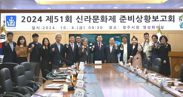 시는 4일 시청 영상회의실에서 이강희 시의회 문화도시위원, 오기현 경주문화재단 대표이사, 김상용 한국예총 경주지회장, 박임관 경주문화원장 등의 화백위원 10명과 시민축제운영단 대표 3명이 참석한 가운데 신라문화제 개최 보고회를 가졌다.