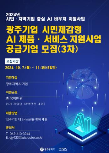 | 광주광역시, ‘인공지능 바우처’ 참여기업 3곳 추가 모집 |