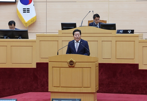 | 8일 전라남도의회 본회의장에서 5분 자유발언 중인 정길수 의원 |