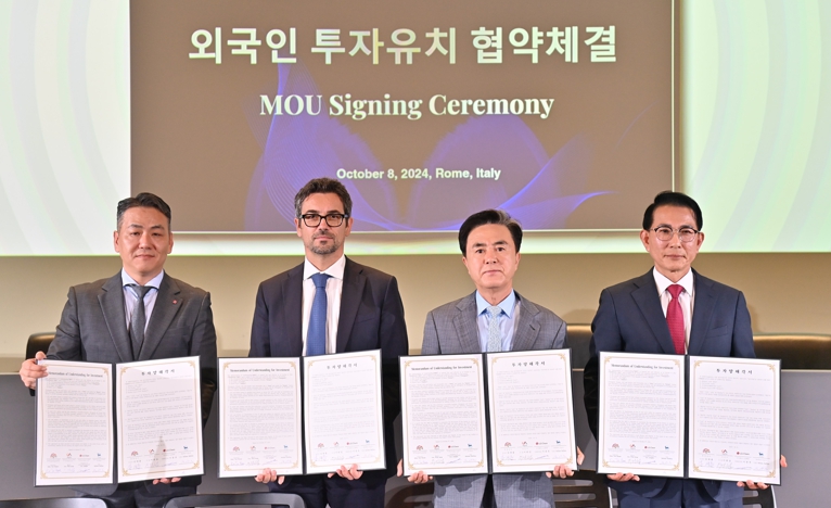 유럽을 출장 중인 김 지사는 8일(현지시각) 이탈리아 로마에서 스테파노 발리스타 에니 라이브 CEO, 이종호 LG화학 유럽법인 대표, 이완섭 서산시장과 투자협약(MOU)을 체결했다.