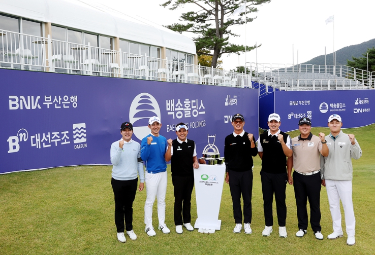 이날 포토콜에는 ‘디펜딩 챔피언’ 엄재웅(34.우성종합건설)을 필두로 제네시스 포인트 1위 장유빈(22.신한금융그룹)과 상금순위 1위 김민규(23.CJ), 2024년 ‘현대해상 최경주 인비테이셔널’ 우승자 이수민(31.우리금융그룹), 2022년 본 대회 우승자 황중곤(32.우리금융그룹), KPGA 투어 통산 상금 1위에 자리하고 있는 박상현(41.동아제약), 대회가 개최되는 부산 지역 출신 강태영(26.한양류마디병원)이 참석했다.