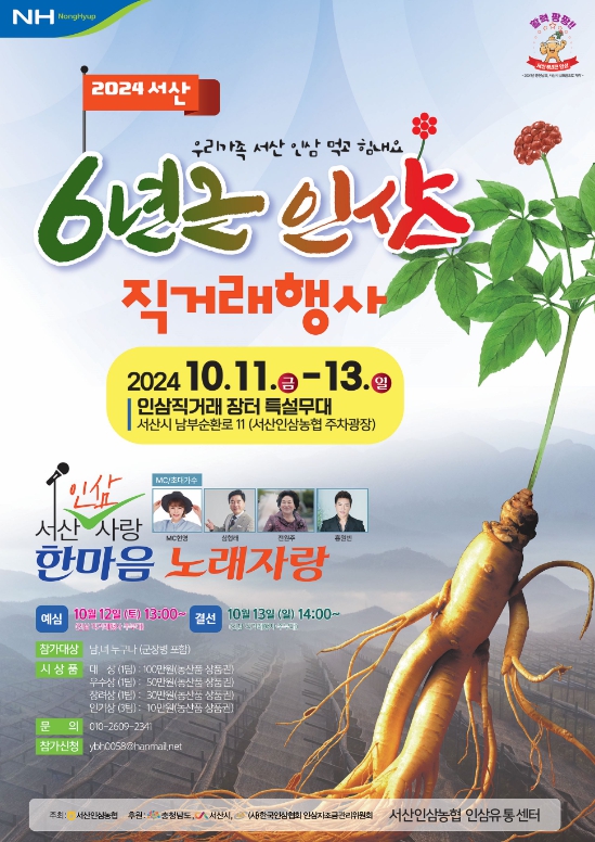 서산인삼협동조합 주관으로 ‘우리 가족 서산 인삼 먹고 힘내요’라는 주제로 진행되는 이번 행사는 다양한 프로그램이 진행될 예정이다.