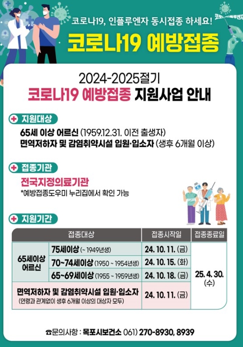 목포 내 65개소 지정의료기관에 방문해 접종받을 수 있으며 주소지와 관계없이 전국 지정의료기관에서도 접종 가능하다.