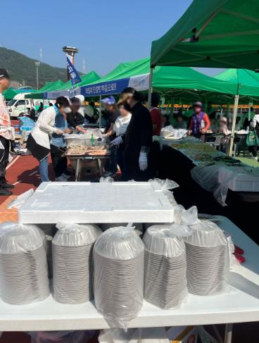 이날 행사장에는 사전에 실시한 다회용기 수요 조사에 따라 접시, 3종 찬기, 밥/국그릇, 면기, 수저, 컵 3종 등 총 9종류의 다회용기 36,000개가 공급됐다.