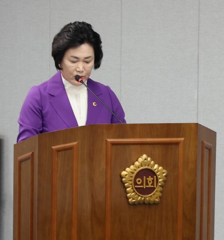 | 전라남도의회 최미숙 의원이 지난 8일 보건복지환경위원회에서 ‘전라남도 유해야생동물에 의한 인명 및 농작물 등 피해예방과 보상에 관한 조례 일부개정조례안’에 대해 제안설명을 하고 있다.[전남도의회 제공] |