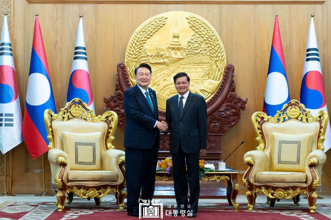 | 10월 10일 아세안 관련 정상회의 참석을 위해 라오스 비엔티안을 방문 중인 윤석열 대통령은 「통룬 시술릿 (Thongloun Sisoulith)」 라오스 국가주석과 첫 정상회담(소인수 회담)을 가졌다. |