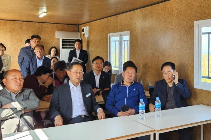 명현관 군수와 이성옥 군의회의장, 박지원 국회의원실 및 민주당 당직자들은 11일 마산면 간척지 일원에서 열린 지질조사 설명회 현장을 찾아 사업 추진의 경위를 묻고, 관련기관에 사업 중단을 강력히 요구했다.