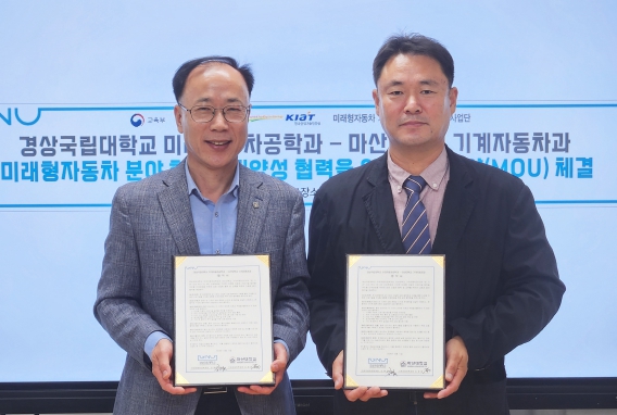| 경상국립대 미래형자동차공학과와 마산대 기계자동차과는 10월 11일 가좌캠퍼스 ICT 융합센터(601동) 세미나실에서 산학연협력 활성화를 위한 업무협약(MOU)을 체결했다. |