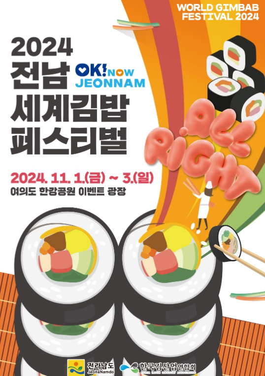 강석운 전남도 수산유통과장은 “세계 김밥 페스티벌을 통해 김 산업을 전남이 주도하도록 전남산 김 브랜드의 가치를 지속해서 높일 계획”이라며 “전남산 김의 풍미와 수산식품을 직접 느껴보길 바란다”고 말했다.