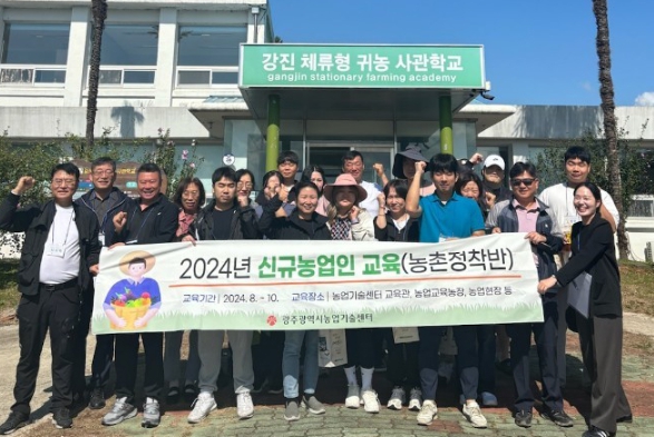 | 광주광역시 농업기술센터 농촌정착반 교육생들이 강진군 체류형귀농사관학교에서 자리를 함께 했다 |