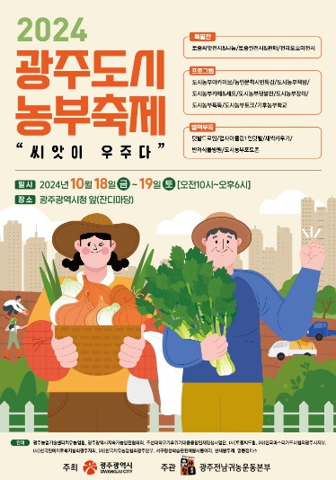 남택송 농업동물정책과장은 “도시농업이 기후변화 대응, 도시민의 공동체 문화확산, 여가 지원 등의 다양한 역할을 수행하면서 중요성이 높아지고 있다”며 “도시농부 어울림 한마당이 제31회 광주김치축제와 연계돼 개최되는 만큼 많은 시민들이 참여해 도시농부들과 서로 소통하고, 다양한 프로그램을 즐기길 바란다”고 말했다.
