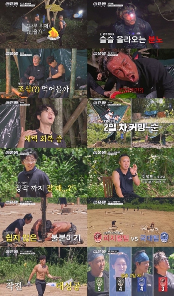 생존지로 돌아간 피지컬 팀과 군인 팀은 배고픔을 참고 잠을 청했다. 반면, 텐트 완성을 못한 국가대표 팀은 ‘정글神’ 김병만에게 도움을 구했다.