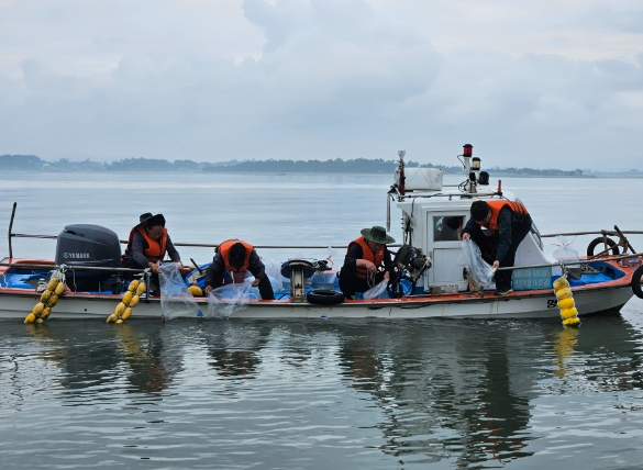 | 탄도만 해역 일원에서 진행한 어린 낙지 종자 방류 행사 |