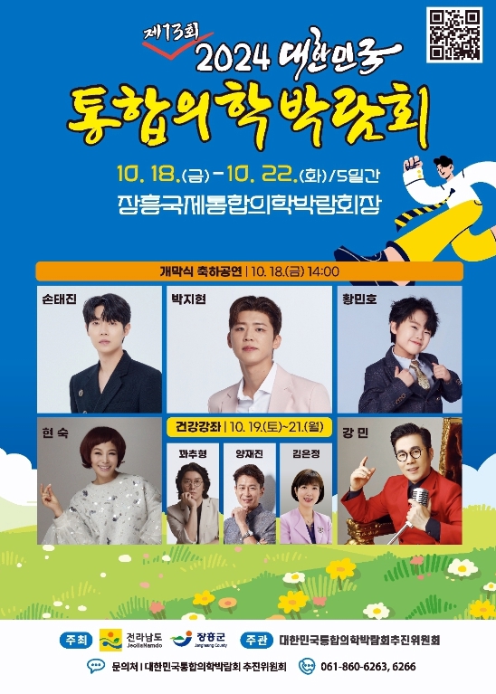 2024 대한민국통합의학박람회는 10월 18일부터 22일까지 장흥군 안양면에 있는 장흥국제통합의학박람회장에서 개최된다.