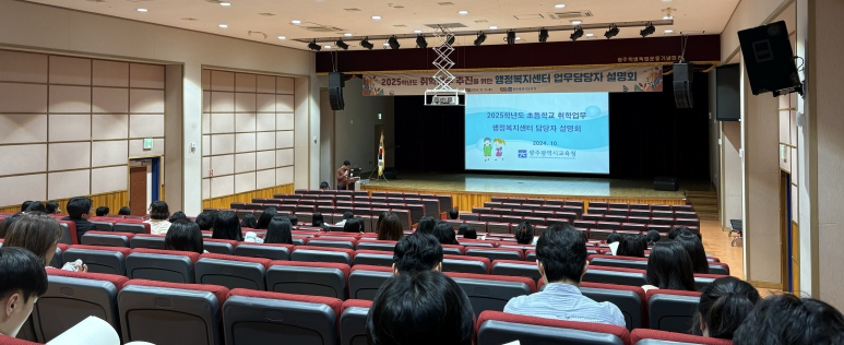 시교육청은 행정복지센터와 유치원을 통해 리플릿을 배부하고, 지난 15일 광주학생독립운동기념회관 강당에서 행정복지센터 취학업무 담당자 90여 명을 대상으로 초등학교 취학업무 설명회를 개최했다.