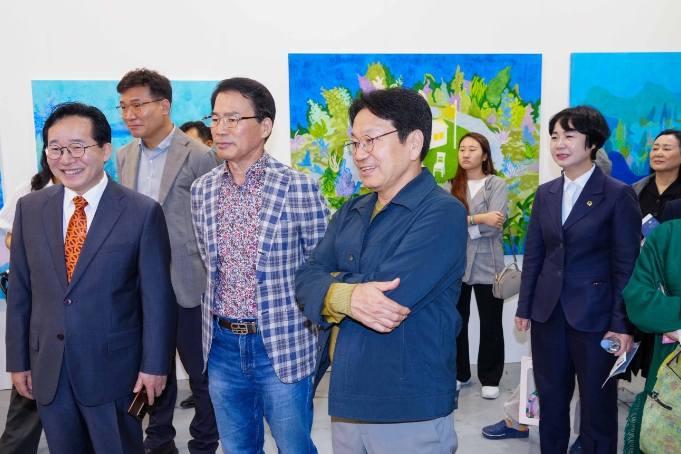 특히 진도 출신의 세계적 현대미술가 채성필 작가의 개인부스전이 큰 주목을 받았다. 작가는 한국 전통미술과 현대회화를 조화롭게 결합한 작품을 통해 동서양의 경계를 넘나드는 독창적 예술세계를 선보였다. 특히 바다의 움직임을 현대미술적 언어로 재해석한 ‘물의 초상’은 동양의 미학적 감수성이 잘 드러나는 작품으로 관객들의 발걸음을 멈추게 했다.