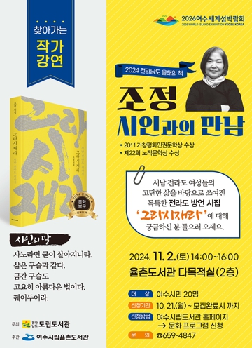 | 여수시립율촌도서관, ‘그라시재라’ 조정 시인과의 만남 마련 |