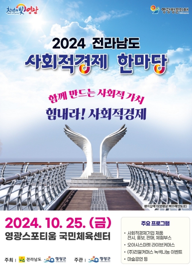 이번 행사는 영광군이 2024년 영광방문의 해를 맞이하여 지난 3월 말 개최지 신청에 응모, 선정되어 전라남도와 공동 주최하고 영광군이 주관하는 행사로서 전남 소재 사회적경제기업인과 도민 1천여 명이 방문할 것으로 예상된다.