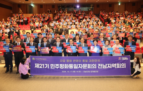 이날 개최된 민주평통 전남지역회의에는 김영록 지사와 전남도의회 이광일?이철 부의장, 시군협의회장 등 300여 명이 참석했으며 영상메시지와 퍼포먼스에 이어 정책설명, 활동보고, 정책건의 순으로 진행됐다.