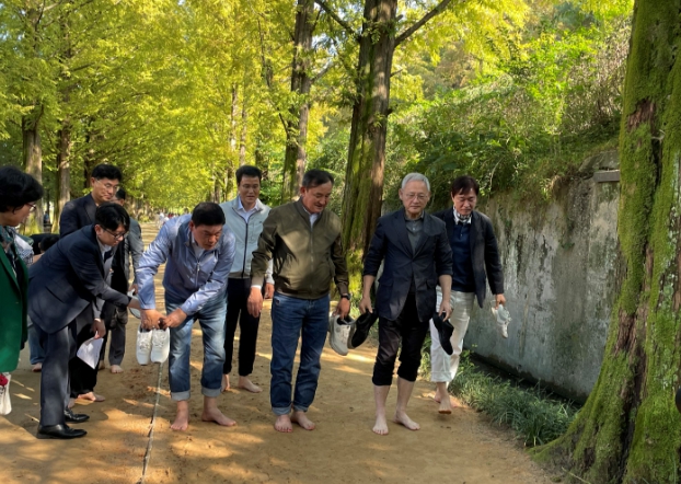 | 유인촌 장관 메타세콰이어길 맨발걷기 |