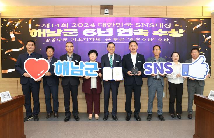 | 해남군, 대한민국 SNS 대상 6년 연속 수상 |
