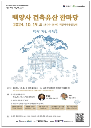 장성군과 국가유산청이 주최하고 백양사, 광주문화나루가 주관하는 ‘건축유산 한마당 ? 법당 지은 사람들’은 전통산사 문화유산 활용사업의 일환으로 마련된 문화?예술 프로그램이다.