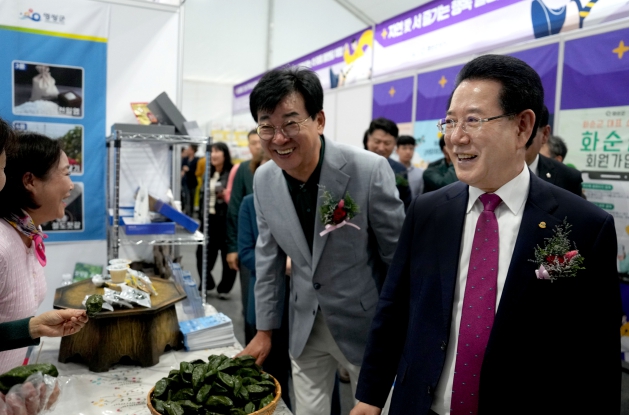 | 김영록 전라남도지사가 18일 오후 장흥군에서 열린 ‘제13회 대한민국통합의학박람회’ 개막식에서 박람회장을 둘러보고 있다. |