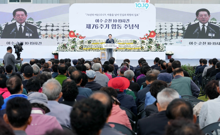 김영록 지사는 추념사를 통해 “긴 세월, 깊은 아픔과 상처를 안고 견딘 희생자와 유가족께 진심 어린 위로의 말씀을 올린다”며 “76년의 여순사건이 아픔을 넘어 진실과 희망의 길로 나아가도록 전남도가 꺼지지 않은 등불이 돼 환히 밝히겠다”고 말했다. 이어 “여순사건의 온전한 진상규명과 명예회복을 위해 여순사건특별법 개정에도 온힘을 쏟겠다”고 강조했다.