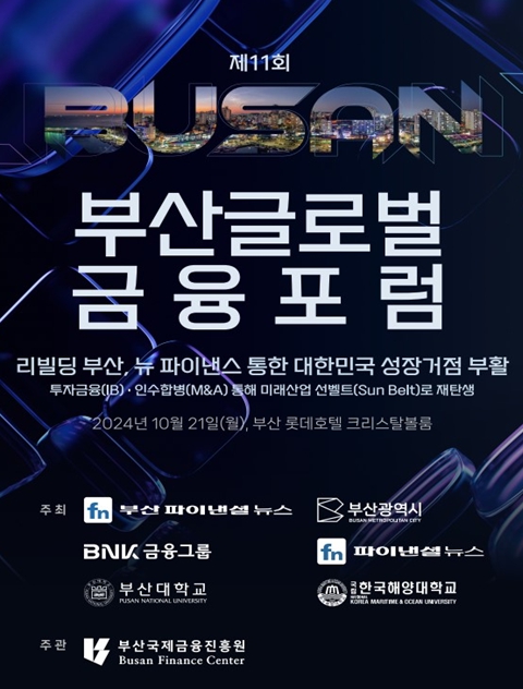 올해로 11회째를 맞는 이번 포럼에서는 '리빌딩 부산, 뉴 파이낸스 통한 대한민국 성장거점 부활'이라는 주제로, 투자금융(IB)과 인수합병(M·A)을 활용해 부산이 미래산업 선벨트(Sun Belt)로 나아가기 위한 전략을 논의한다.
