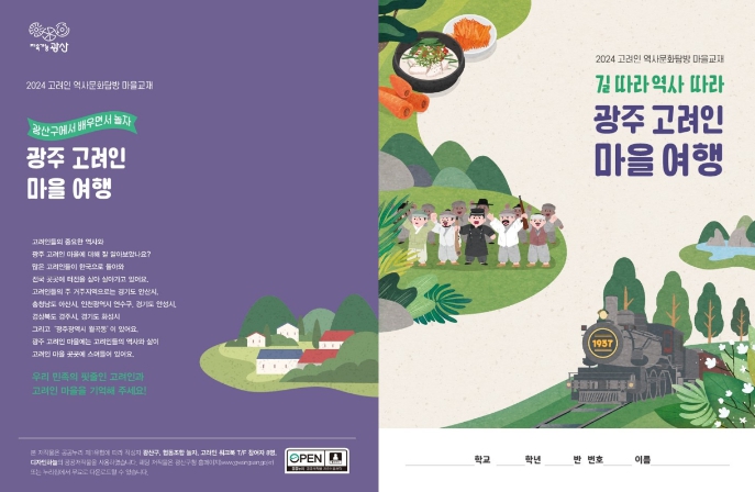 마을교재는 제작 참여자들의 저작 동의로 해당 교재와 해설집, 스티커 3정을 공공누리 1유형을 적용했다. 출처를 표시하면 교육용으로 사용할 수 있으며 자료는 광산구청 누리집에서 확인할 수 있다.