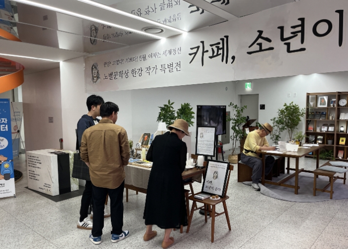 한강 작가의 노벨문학상 수상을 기념해 마련한 북카페에는 ‘소년이 온다’, ‘채식주의자’, ‘작별하지 않는다’, ‘서랍에 저녁을 넣어두었다’, ‘희랍어 시간’, ‘그대의 차가운 손’ 등 30여권을 비치해 시민들이 작가의 작품세계를 만날 수 있도록 했다.