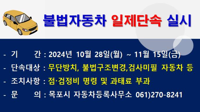 | 목포시, 하반기 불법자동차 일제단속 나선다 |