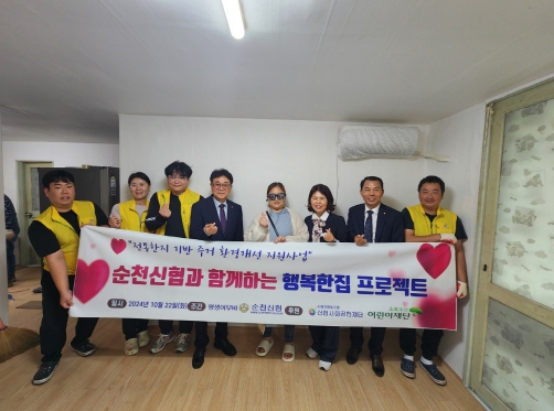 행복한 집 프로젝트는 신협사회공헌재단과 초록우산어린이재단의 후원을 통해 이뤄지는 사회공헌활동이다. 유해물질 저감효능이 있는 전주한지 벽지와 장판 시공 등의 지원을 통해 저소득 아동가구가 쾌적한 환경에서 생활할 수 있도록 돕고 있다. 순천 신협은 올해 총 4회 차에 걸쳐 1,200만원 상당의 지원을 하고 있다.