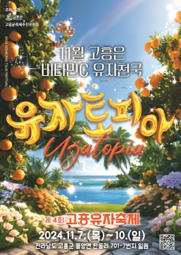 한편, 고흥유자축제는 11월 7일부터 4일간 ‘11월 고흥은 비타민C 유자토피아’라는 주제로 열릴 예정이며, 자세한 사항은 고흥관광 홈페이지와 유자축제 홈페이지를 통해 확인할 수 있다.
