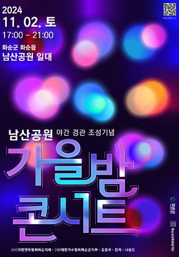 이를 기념하여 화순군민들에게 새로운 화순의 랜드마크로 탄생한 남산공원을 알리고자 오는 11월 2일 남산공원 야간경관 조성기념 가을밤 콘서트를 진행한다.