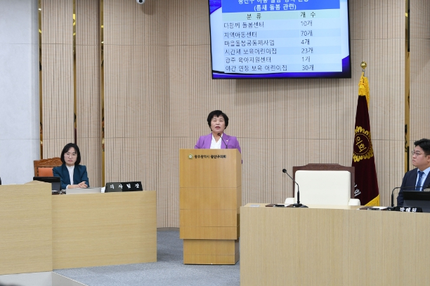 조영임 의원은 “현대 사회에서 맞벌이 부부 증가로 육아 공백을 메울 대책의 필요성이 커진 가운데, 광산구는 젊은 부부들이 많고 아이들이 형제자매 없이 외동인 경우가 많아 아이돌봄에 대한 요구가 다양하다”고 밝혔다.