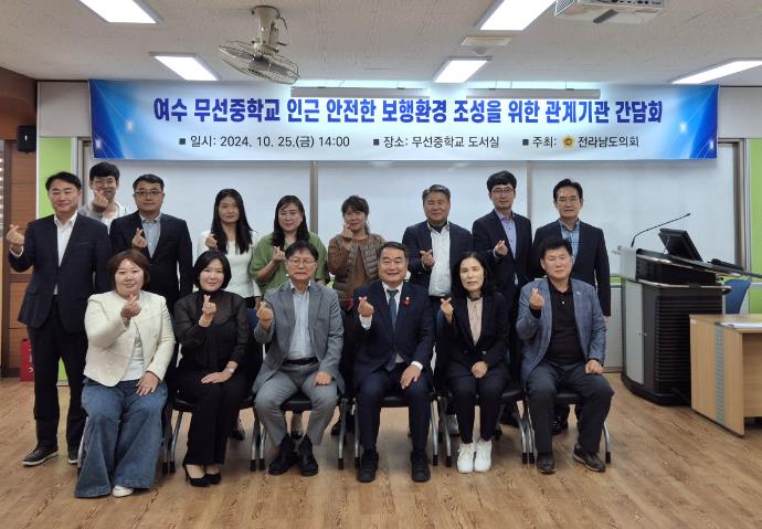 이어, “이번 간담회를 통해 무선중학교 인근의 보행환경 개선을 위한 문제점들을 점검하고, 실질적인 해결 방안을 모색하는 자리가 되길 바란다”며, “앞으로 전라남도, 도 교육청, 여수시, 여수교육지원청 등 관계기관과 함께 안전한 보행환경 조성을 위해 최선을 다하겠다”고 덧붙였다.