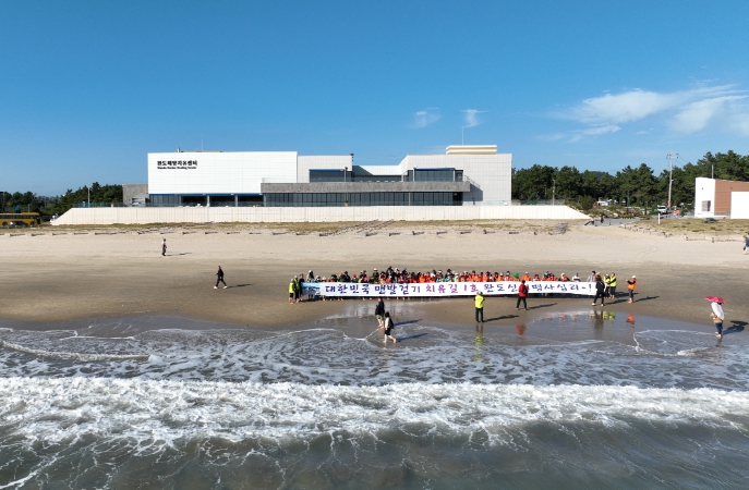 26일 진행된 신지 명사십리 치유길 맨발 걷기 페스티벌에는 400여 명이 참여해 황톳길과 부드러운 모래를 밟으며 활력을 충전하는 시간을 가졌다.