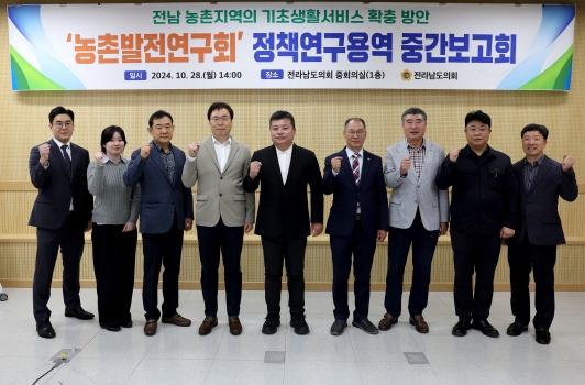 | 전남도의회 ‘농촌발전연구회’, 전남 농촌지역 기초생활서비스 확충 위한 연구용역 중간보고회 개최 |