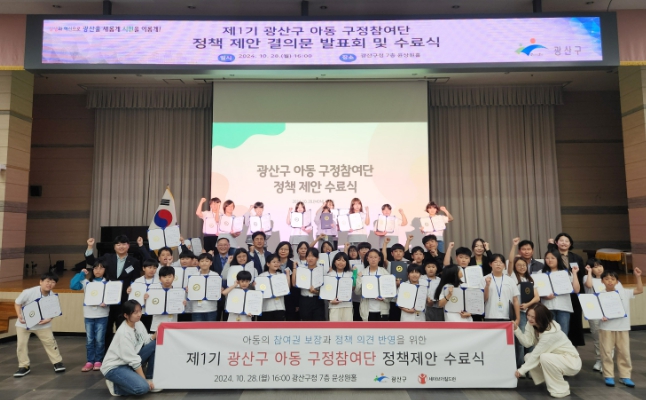 광주 광산구는 지난 28일 구청 7층 윤상원홀에서 제1기 아동 구정참여단 정책 제안 발표회를 열었다고 밝혔다.