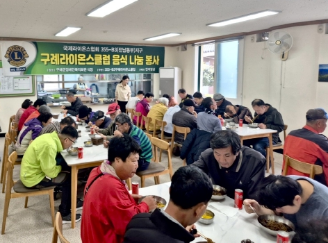 이날 음식 나눔 행사에는 구례라이온스클럽 선상욱 49대 회장, 장형덕 50대 회장, 권종훈 51대 현임회장을 비롯한 회원들이 함께 참여했고, 구례 소재 중식당 만리장성의 후원으로 짜장면 나눔 행사를 진행했다.