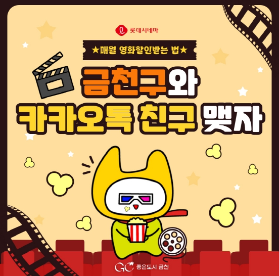 이용 방법은 금천구청 카카오톡 채널 홈에서 할인 쿠폰을 내려받아 롯데시네마 앱 또는 누리집에서 사용하면 된다.