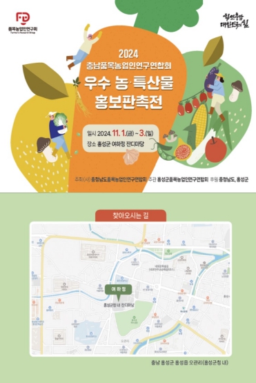 도 농업기술원은 11월 1-3일 홍성 여화정 잔디마당에서 열리는 ‘홍성군 국화축제 및 바베큐축제’와 연계해 우수 농특산물을 저렴하게 구입할 수 있는 홍보판촉전을 연다고 30일 밝혔다.
