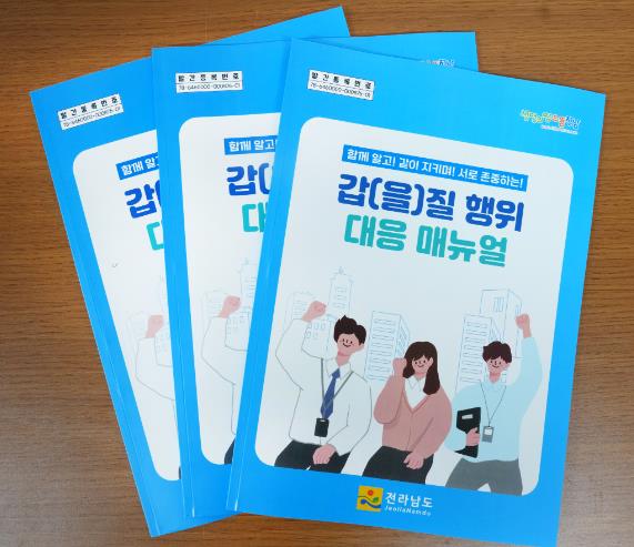 김세국 전남도 감사관은 “매뉴얼 책자를 활용해 갑(을)질 행위로 고통받는 피해자가 줄어들길 바란다”며 “앞으로 갑(을)질 행위에 대한 감사도 병행해 건전한 공직문화 조성에 지속적인 관심을 기울이겠다”고 말했다.