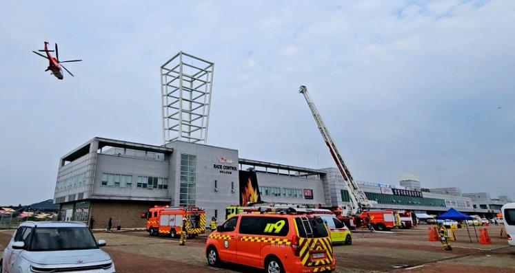 △각 기관 협력 및 임무숙달 △통합재난 대응체계 점검을 목표로 한 이번 훈련에는 구조헬기를 포함해 전기차 화재용 물막이판 등 다양한 장비가 동원돼 실전 긴급 상황이 재현됐다.