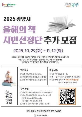 | 광양시, 2025년 ‘올해의 책’ 시민선정단 추가 모집 |